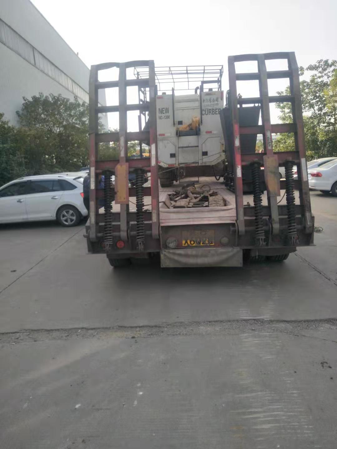 10月29日,陽光明媚,載著徐州新路科技NC1300多功能混凝土滑模攤鋪機的大卡車啟動啦
